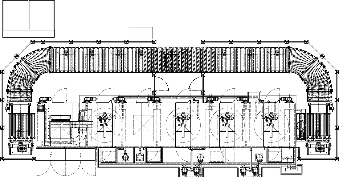 Spritzwaschen, Spritzspülen 1, Spritzspülen 2, VE-Nebel-Spülen, Spritzpassivieren, Hochtemperatur-Umlufttrocknung